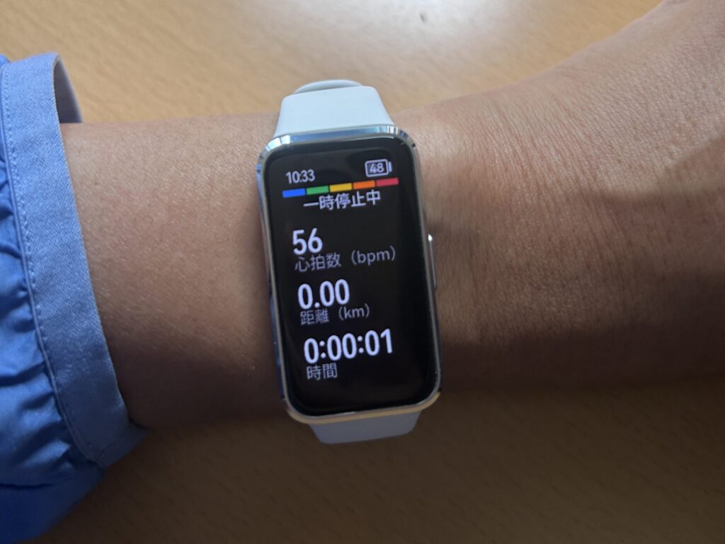 上の写真は、HUAWEI Band 10の「屋外ランニング」モード時の測定画面。