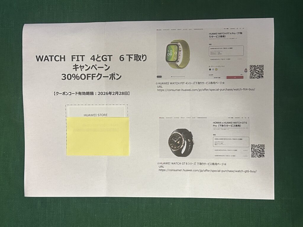 その場でもらえたHUAWEI下取り30%オフクーポンの内容