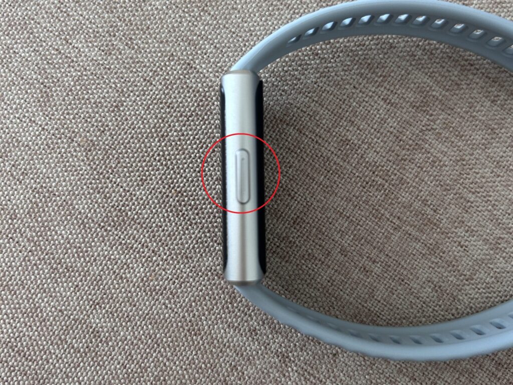 他社製品が画面の「タッチ操作のみ」であるのに対し、HUAWEI Band 11には本体側面に物理ボタン(突起型のボタン)が搭載されています。