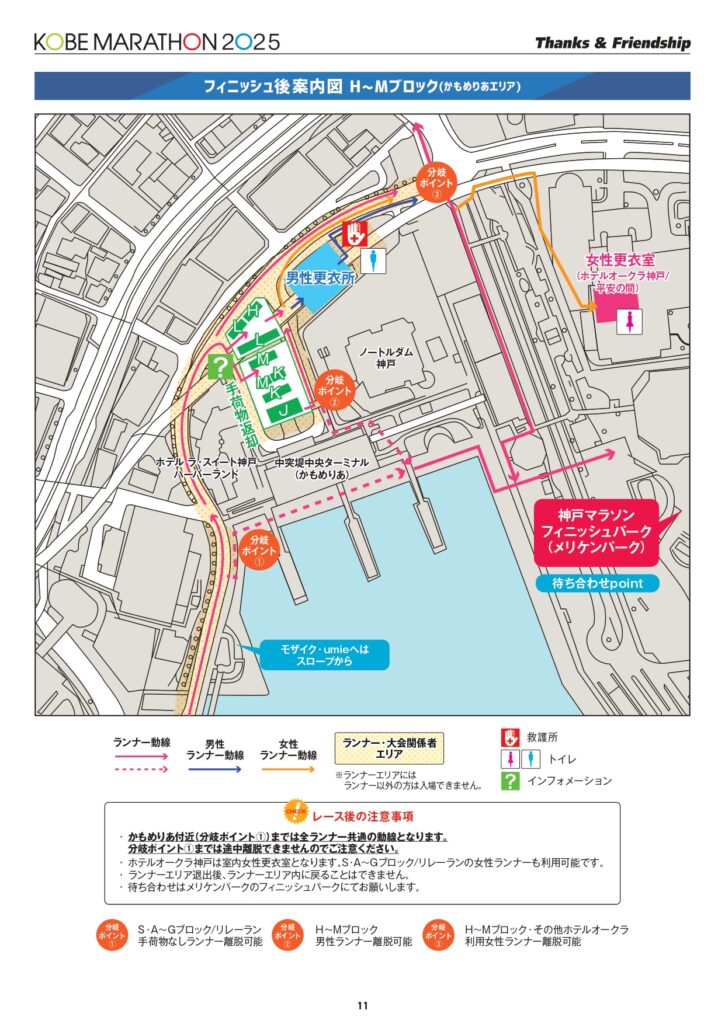 第2ウェーブスタートのブロックで手荷物を預ける人、ホテルオークラ神戸の女子更衣所を利用する人は要注意です。