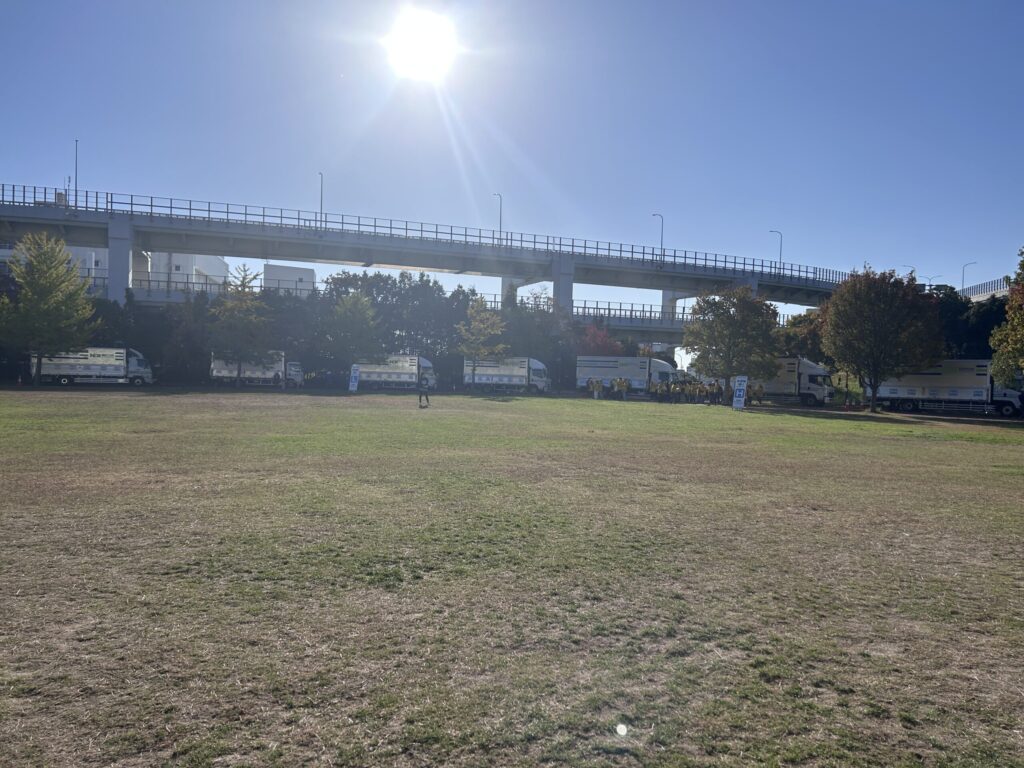公園に着いてすぐ、手荷物預けのトラックへ直行。ぎりぎり間に合った…。