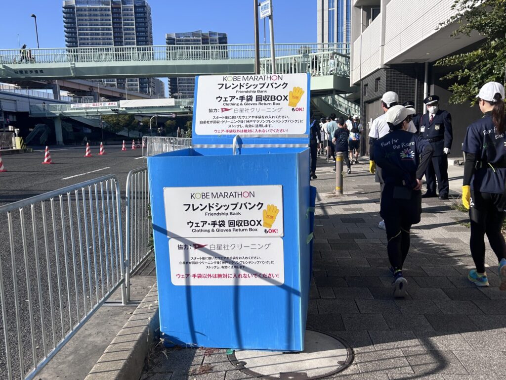 途中、不要となったウェアや手袋を回収するボックスがあります。