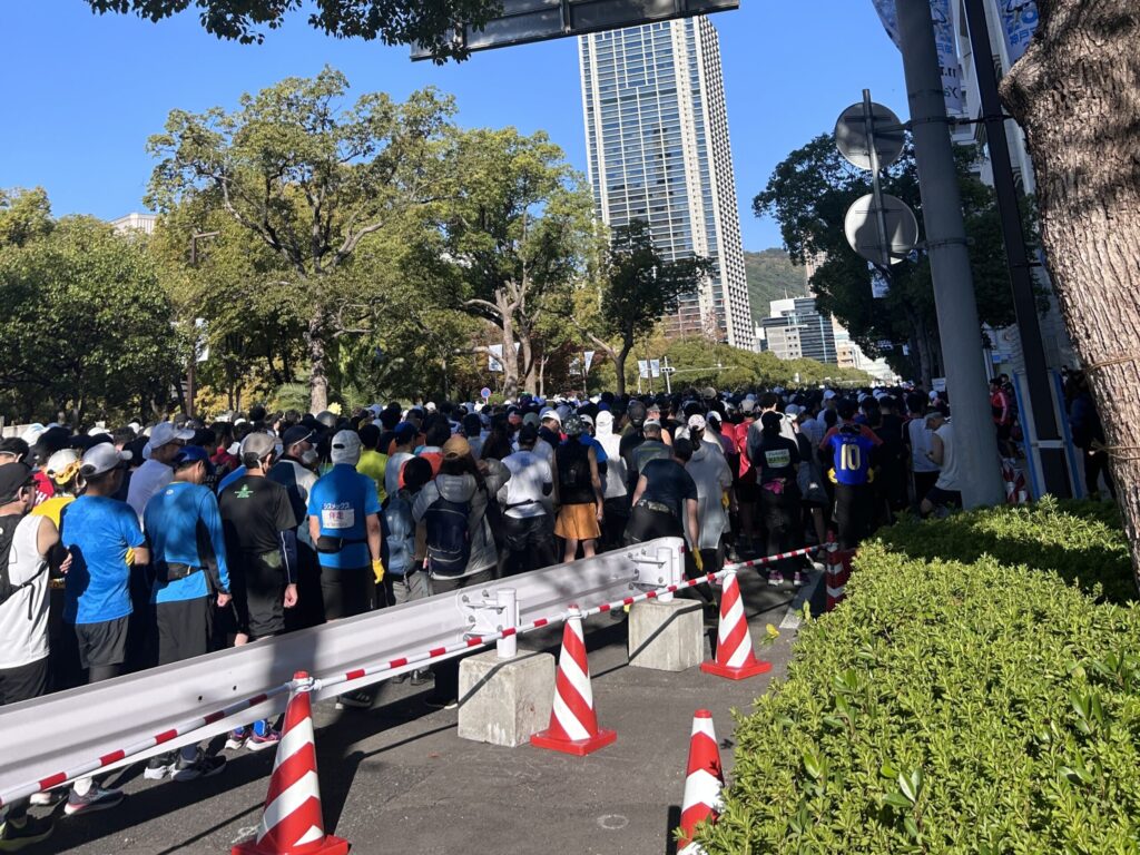 【神戸マラソン】2025年大会の旅ランレポ(2)スタート会場のようす|新大阪のホテル→神戸・JR三ノ宮駅→マラソン会場→スタートまでの流れ