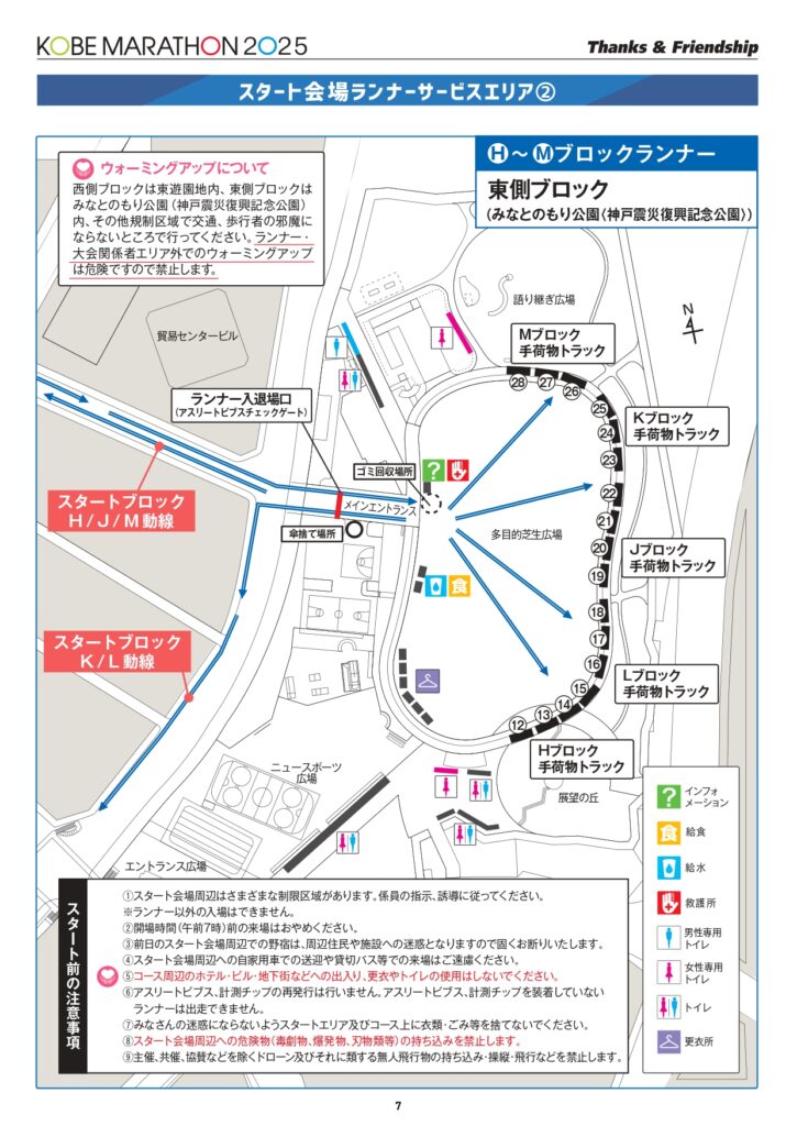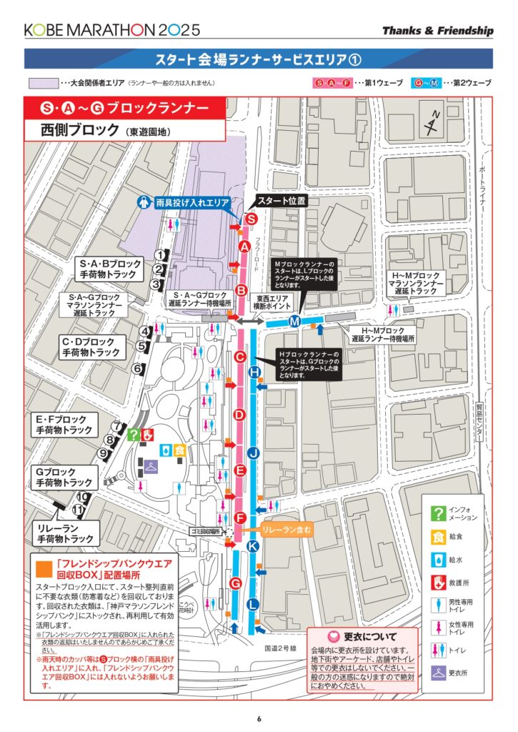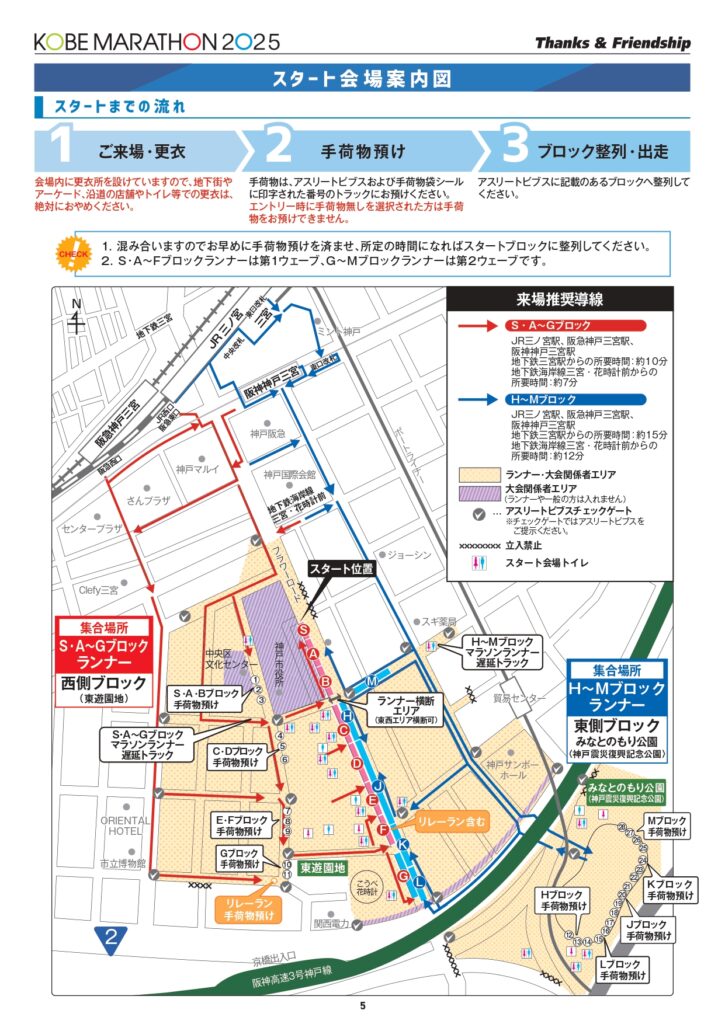 スタート地点は神戸市役所前。ランナーエリアは、ブロックによって東側、西側に分かれます。動線も違うので注意。