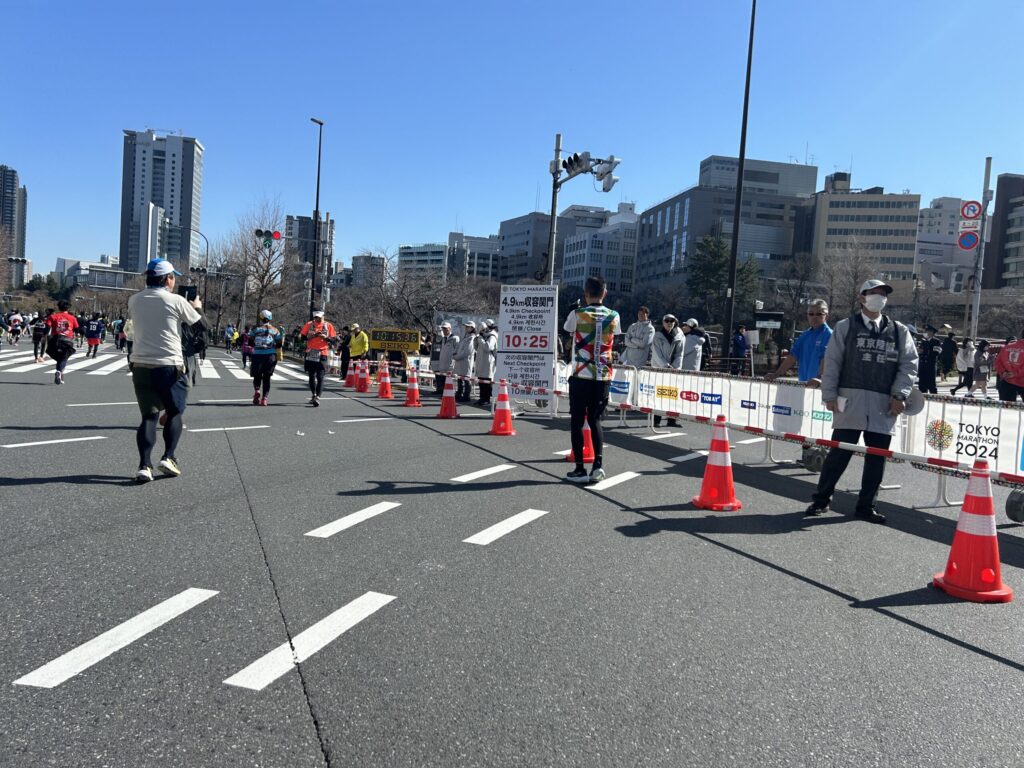 ★10時15分 4.9km 第1関門(市ヶ谷)