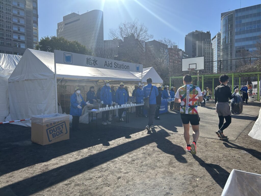 スタートエリアから水をちびちび飲み、脱水・熱中症対策を最後まで続けるほうが良いと思います
